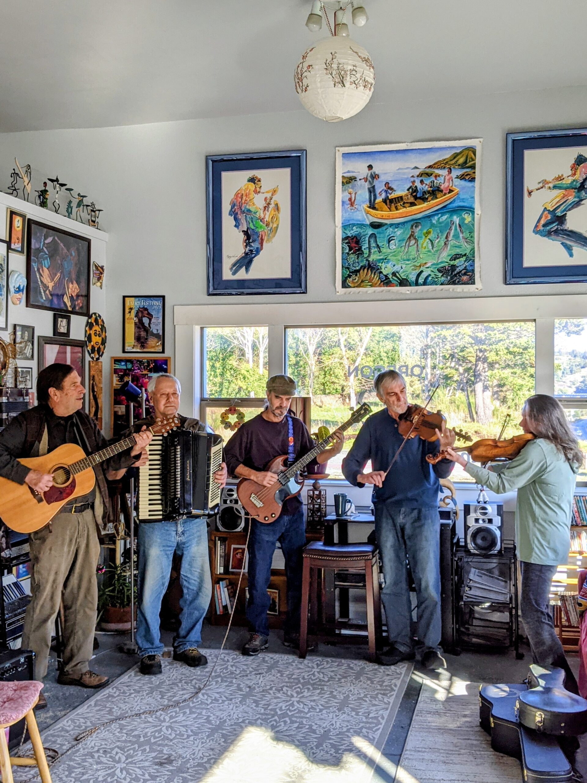 performing on the Friendship Hall stage with several of his local friends for our February